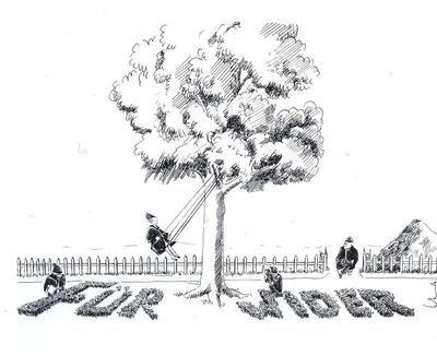 Original Kalenderbilder in unterschiedlichen Techniken: Federzeichnungen Aquarellzeichnungen, Zeichnungen Kohle auf Pappe